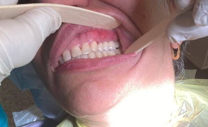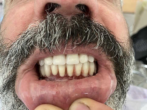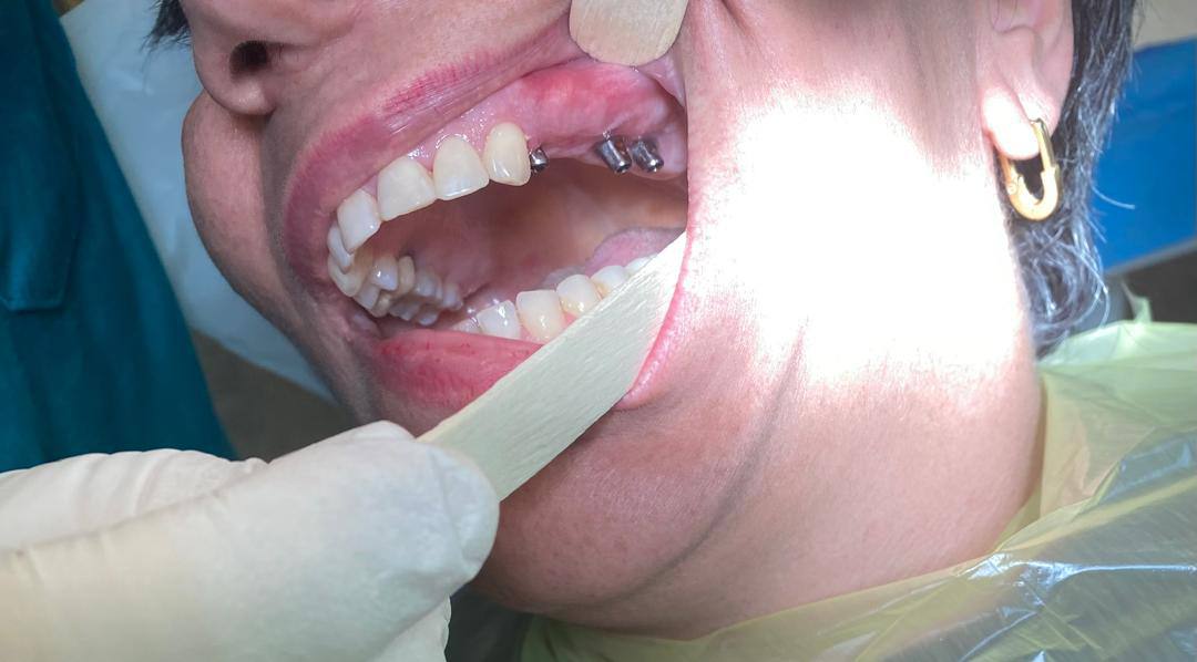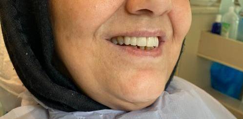 بيمار خانم ٤٦ ساله جهت درمان بی دندانی در ناحيه چپ بالا مراجعه نموده بعد از جراحی ايمپلنت و سينوس ليفت بسته با انجام درمان پرتز ناحيه درمان كامل شد